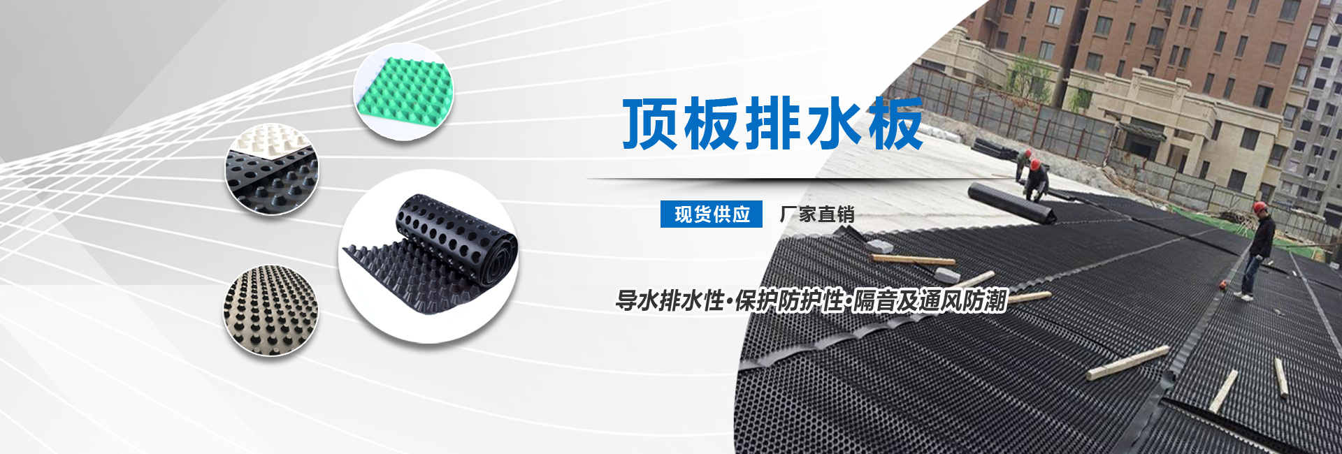 排水板是由聚苯乙烯(HIPS)或者是聚乙烯(HDPE)塑膠底板經(jīng)過沖壓制成圓錐突臺或者加勁肋的凸點(diǎn)(或中空圓柱形多孔)而成,幅寬有3米,長度有10米或者是15米。 施工中常用的排水
